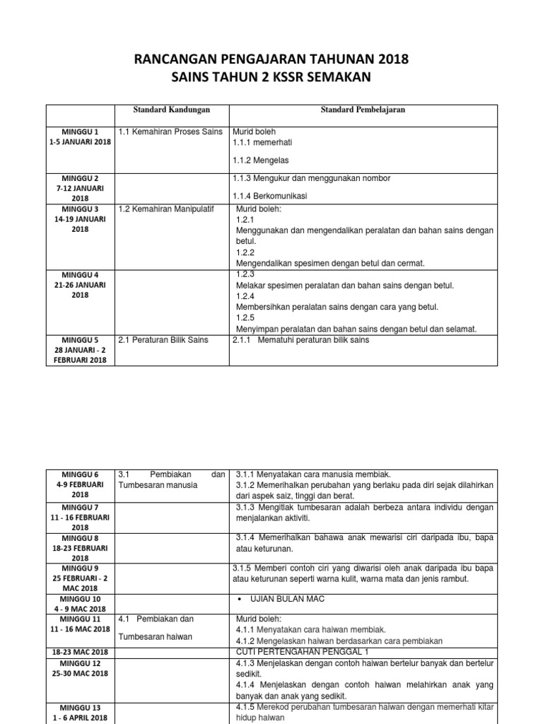 Muat Turun Download Rancangan Pengajaran Tahunan RPT Semua Subjek Tahun 2 KSSR Semakan 2017 sesi 2019. RPT SAINS TAHUN 2 SEMAKAN 2018. Bagi Kurikulum Standard Sekolah Menengah juga akan mengalami sedikit perubahan bermula.